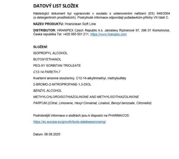 - Profesionální čistící prostředek HRANICLEAN Soft Line pro domácnost