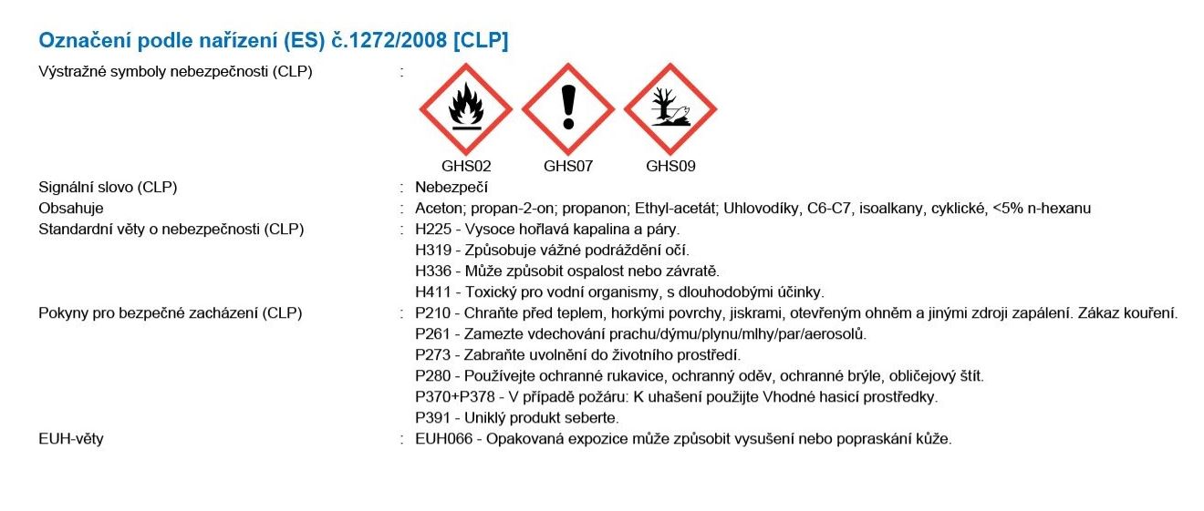 Před manipulací s výrobkem se seznamte s příslušným bezpečnostním listem.