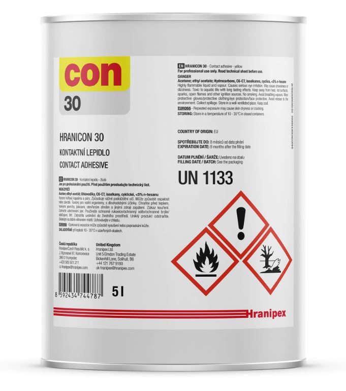 Hranicon 30 je lepidlo transparentní až žluté barvy na bázi polychloroprenu.