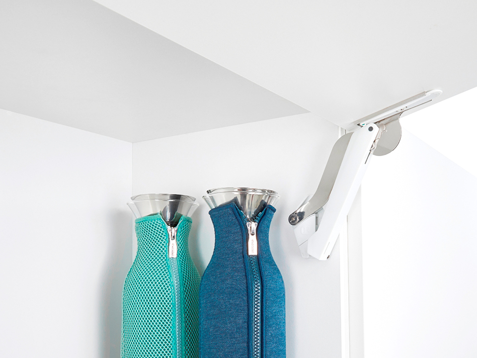 - kompletní sada pro výklop na horní skříňky bez použití závěsů s minimalistickými rozměry kování