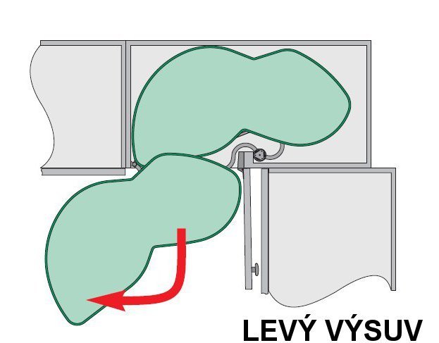 Rohové ledvinové řešení pro pro spodní rohovou skříňku do kuchyňské linky.