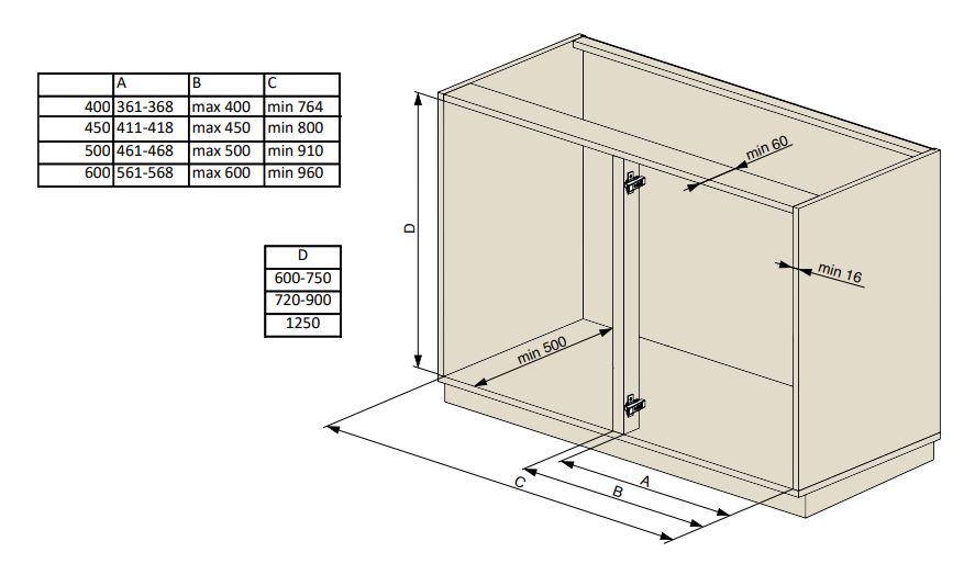 Pro výšku korpusu 720- 900 mm