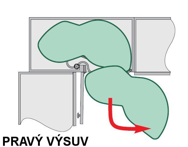 Rohové ledvinové řešení pro pro spodní rohovou skříňku do kuchyňské linky.