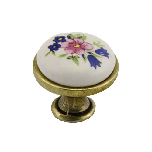 Kovová knopka Venda s porcelánovým středem dotváří vzhled vašeho nábytku.