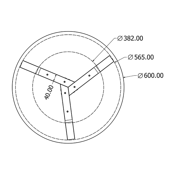 Optimální rozměry stolové desky je průměr 600 x 18 mm