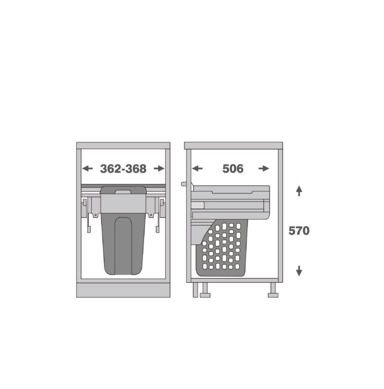 - Rozměr koše: š. 362 - 368 x hl. 506 x v. 570 mm /uvedená šířka je šířka koše s rámem/