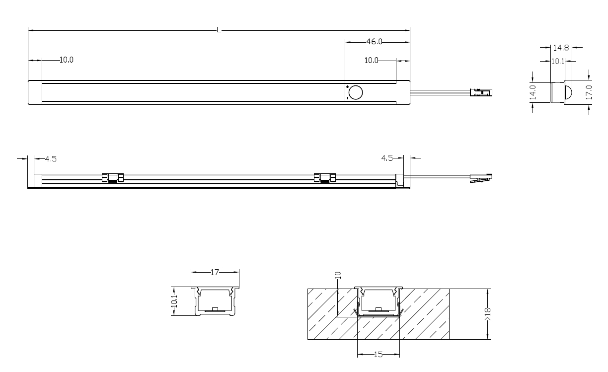 Přívodní kabel s minizásuvkou včetně senzoru PIR je určený pro LED profil Celux SLS-03 s montáží k zafrézování.