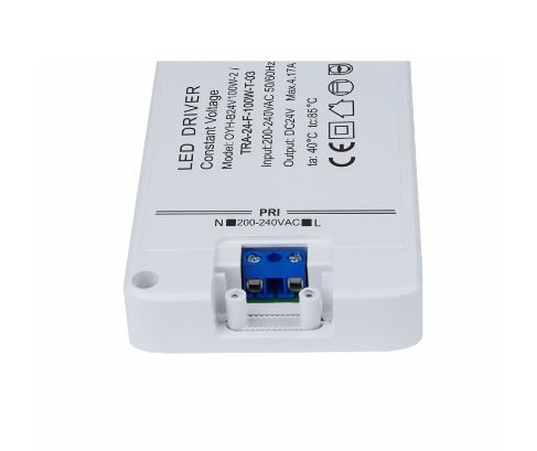 Je vhodný pro nápájení LED osvětlení s napětím 24V DC a celkovým výkonem do 100W.