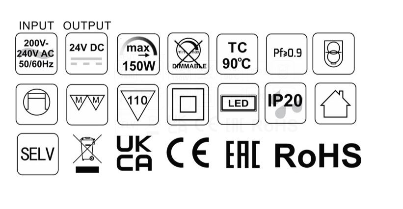 Je vhodný pro nápájení LED osvětlení s napětím 24V DC a celkovým výkonem do 150W.