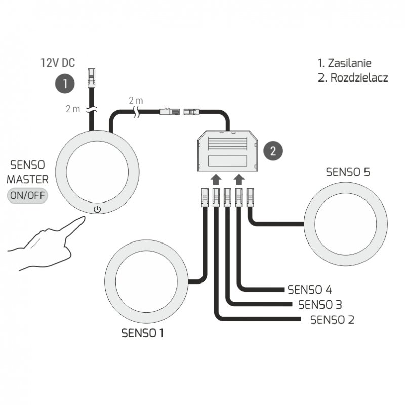 - LED sada 3 světel SENSO MASTER s vypínačem, hliník, neutrální bílá