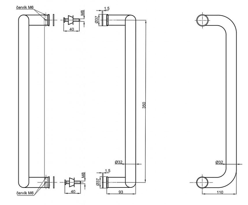 - zkrácením šroubků lze madla použít i pro skleněné dveře