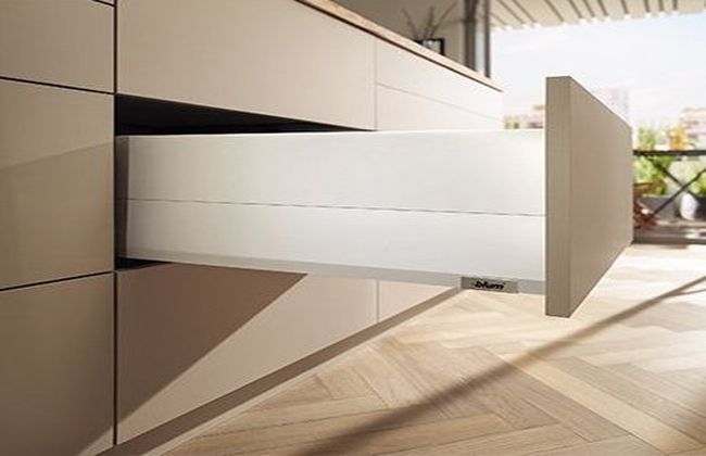 Sadu kování pro zásuvku s dutou bočnicí a zásuvným prvkem Boxcap od firmy BLUM Merivobox využijete při výrobě šuplíků v kuchyni pro odpadkový koš díky předsazenému výsuvu na 70 kg.