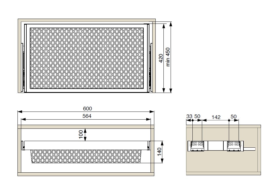 - 1 ks drátěný Mesh koš v rámu pro daný korpus