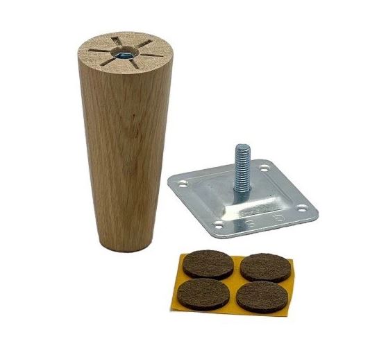 Moderní dřevěná nábytková nožka Linda z masivního dubu, nelakovaný (surový dub).