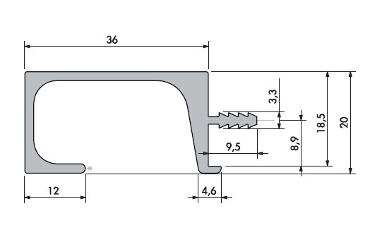 - Narážecí úchytková lišta UKS-7 imitace nerezi INOX