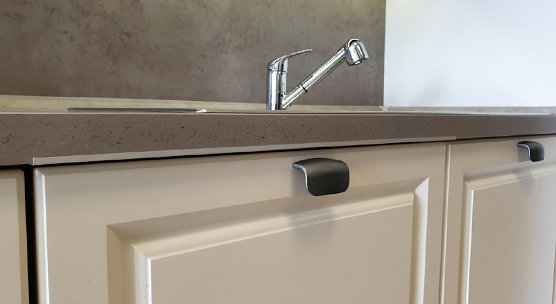 Ochrana ostrohranné pracovní desky proti páře z myčky.