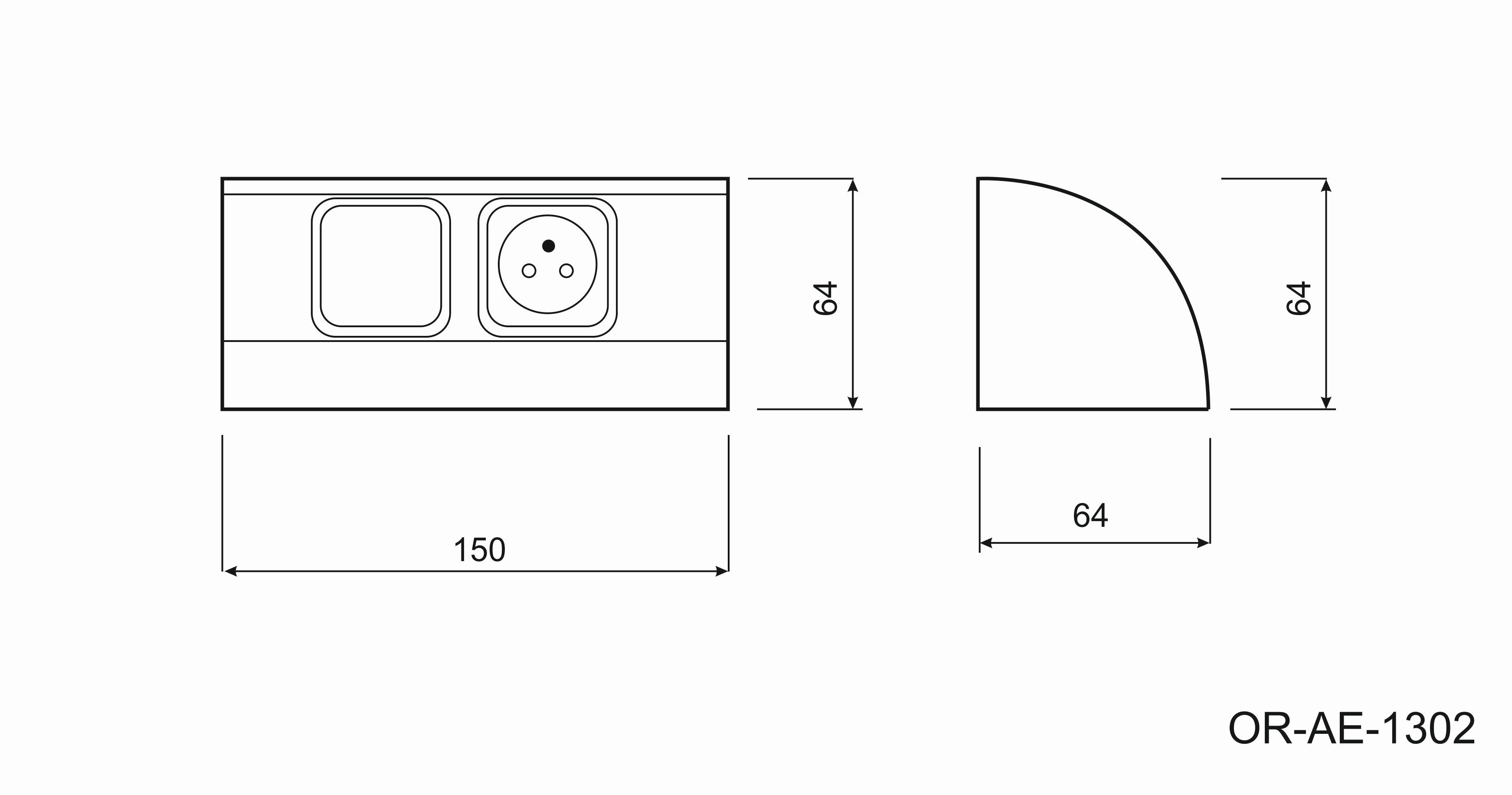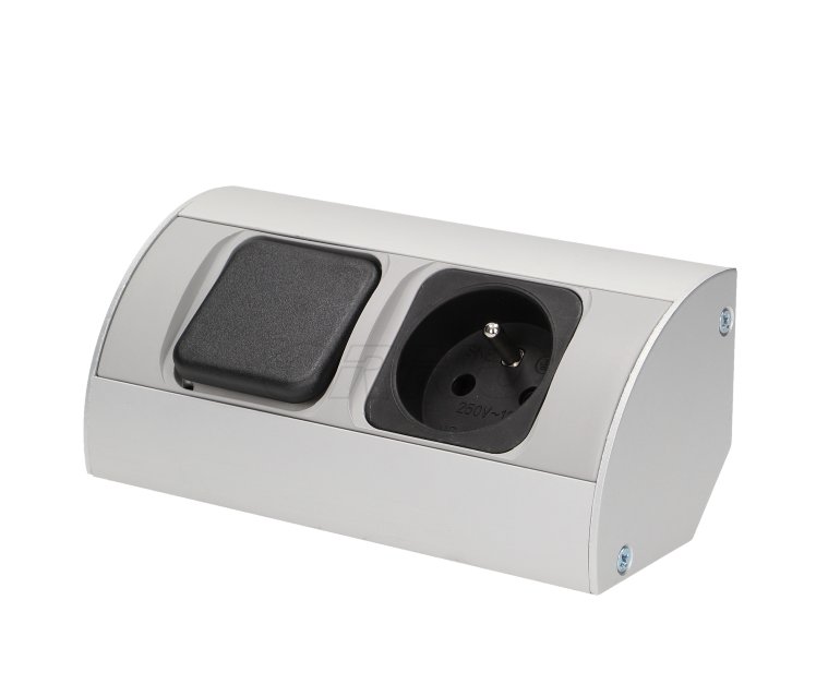 - ORNO zásuvka elektro rohová- 1x zásuvka + 1x vypínač + kabel stříbrná