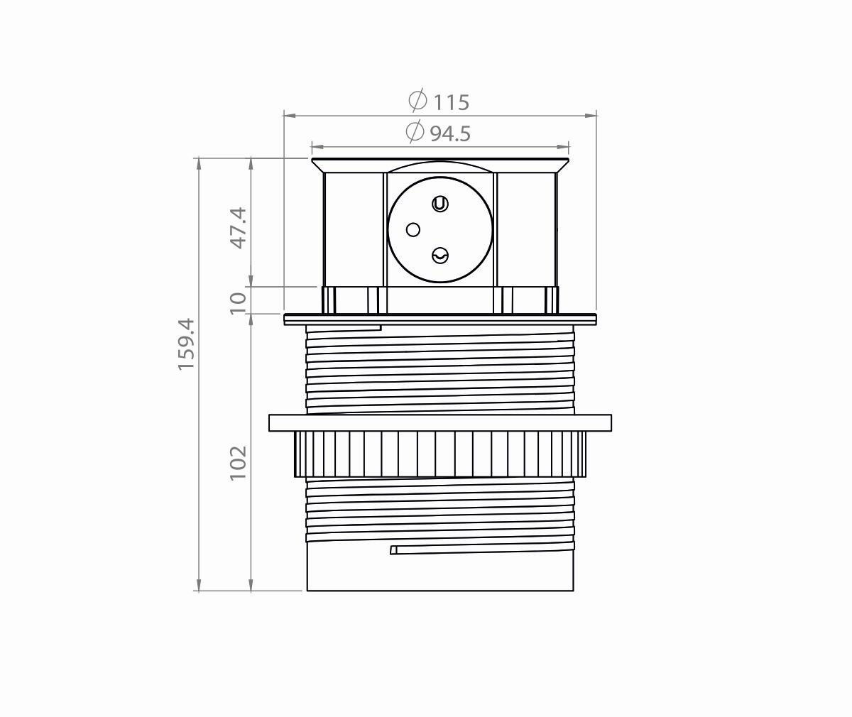 - rozměry montážního otvoru: pr.100 x hloubka 102 mm