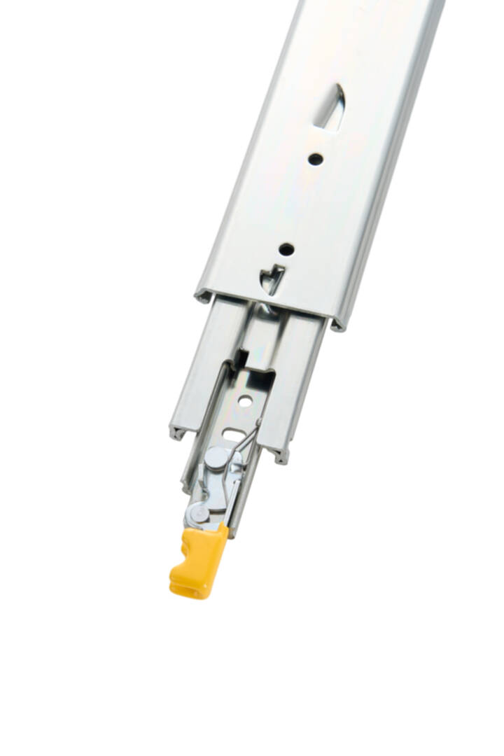 Kuličkový plnovýsuv bez dotlumení s aretací je navržen pro extrémní zátěž, s nosností až 225 kg je ideální pro zásuvky, které vyžadují maximální odolnost a bezpečnost.