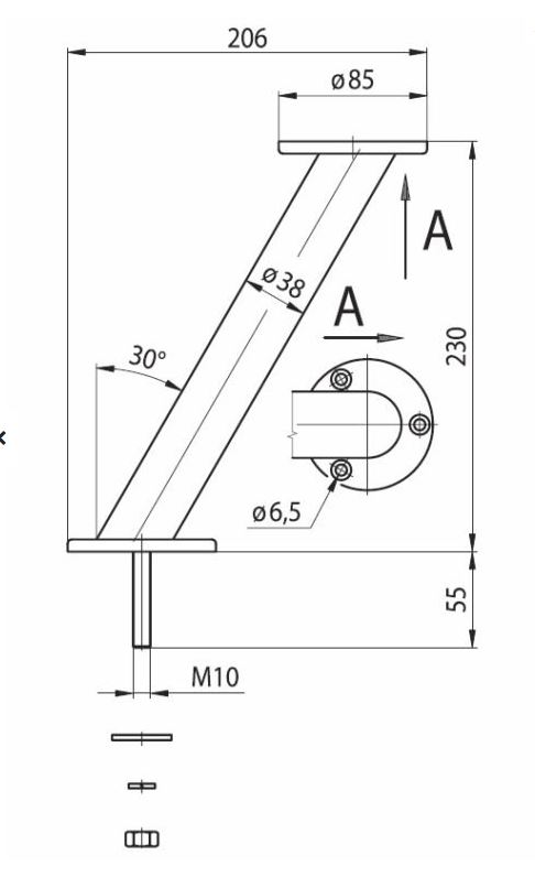 Elegantní rovnoběžná podpěra barového pultu o celkové výšce 230 mm, nosnost 10 kg.