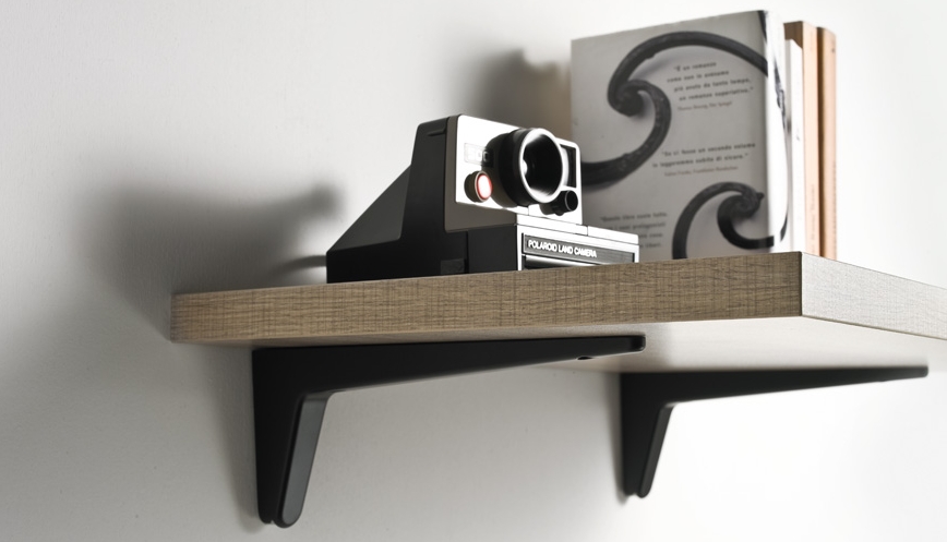 Podpěra policová Typo je vhodná pro dřevěné a skleněné police.