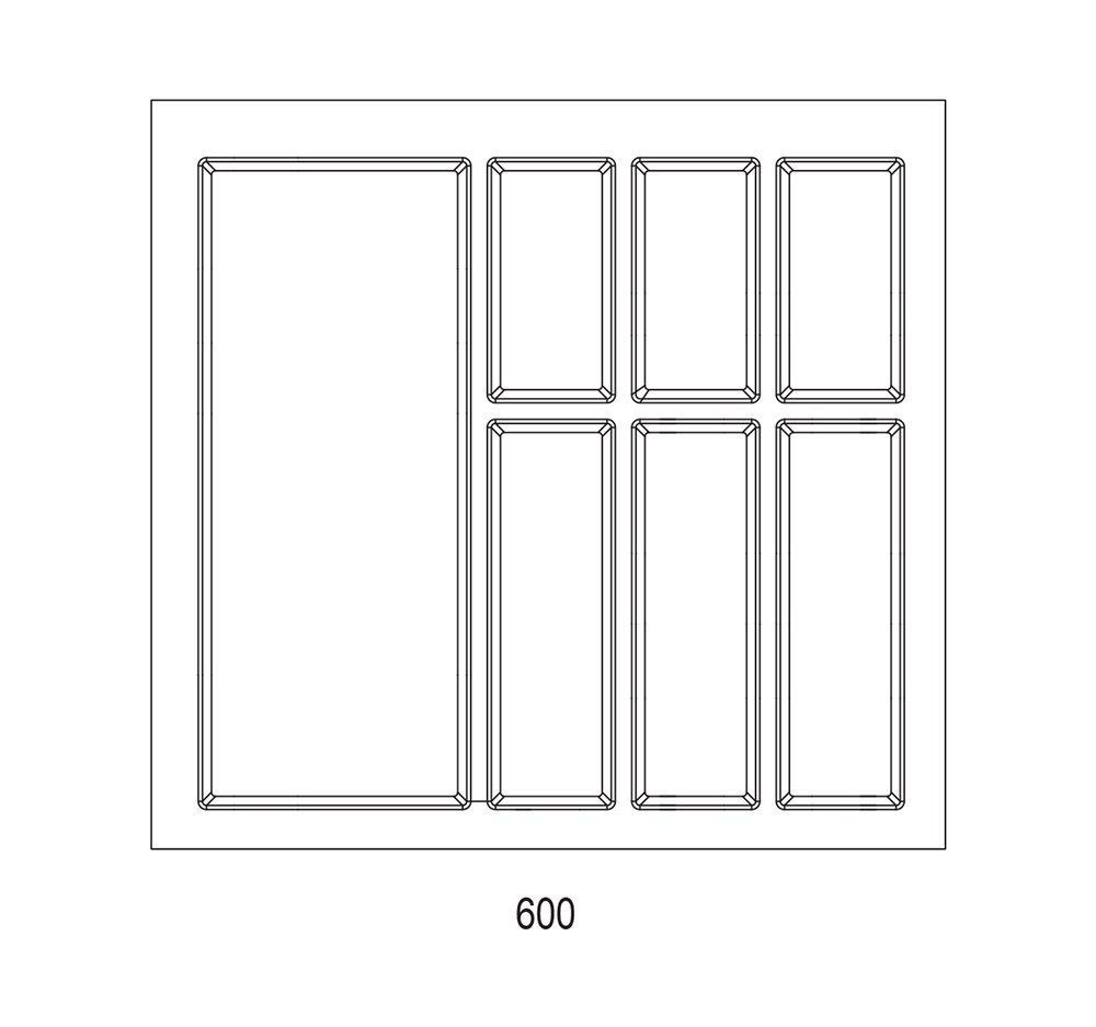 - příborník je určený pro hloubku 500 mm, pro šířku korpusu 600 mm