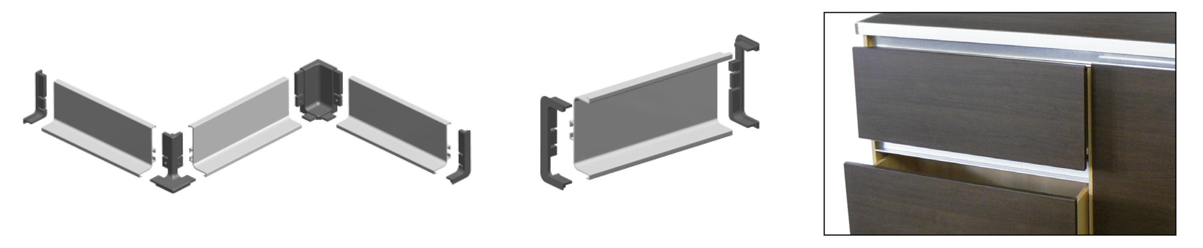 - Bezúchytkové profily pro spodní skříňky