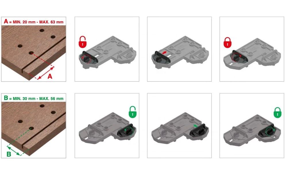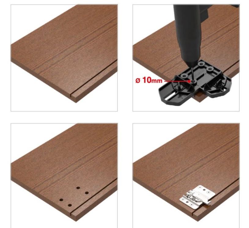 Šablona pro přípravu korpusu při montáži závěsu CAMAR 807 a 801 umožňuje přesné předvrtání otvorů.