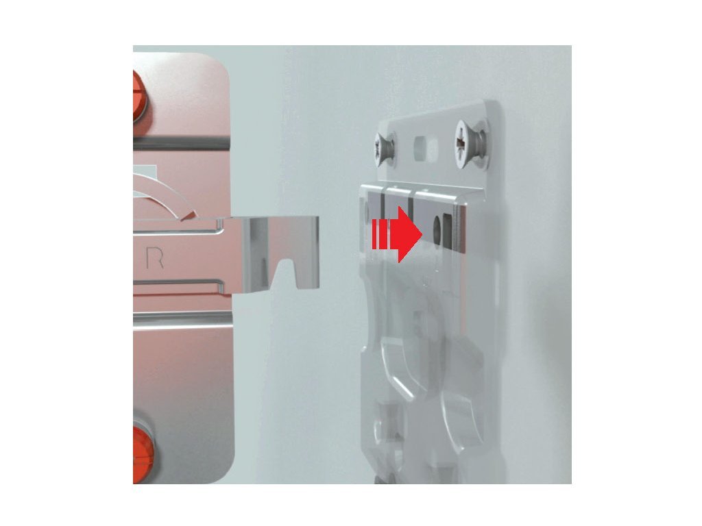 Vysazení a sundání skříňky je možné za použití šroubováku a odjištění zádržného plechu.
