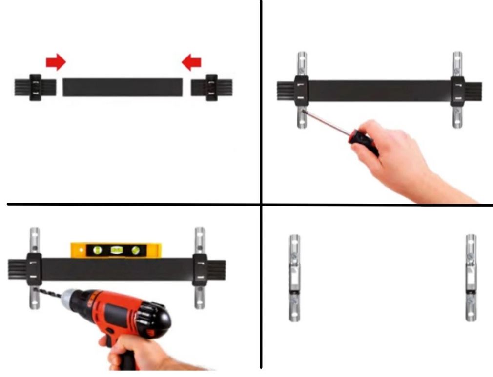 Celou sestavu umístíme do požadované roviny pomocí vodováhy, poté jednoduše označíme pozice pro vrtání otvorů.