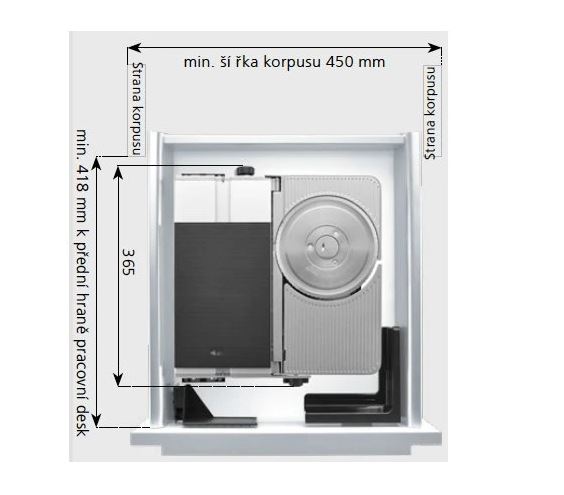 - Min. vnitřní hloubka zásuvky: 344 mm, požadovaná světlá vnitřní šířka 450 mm