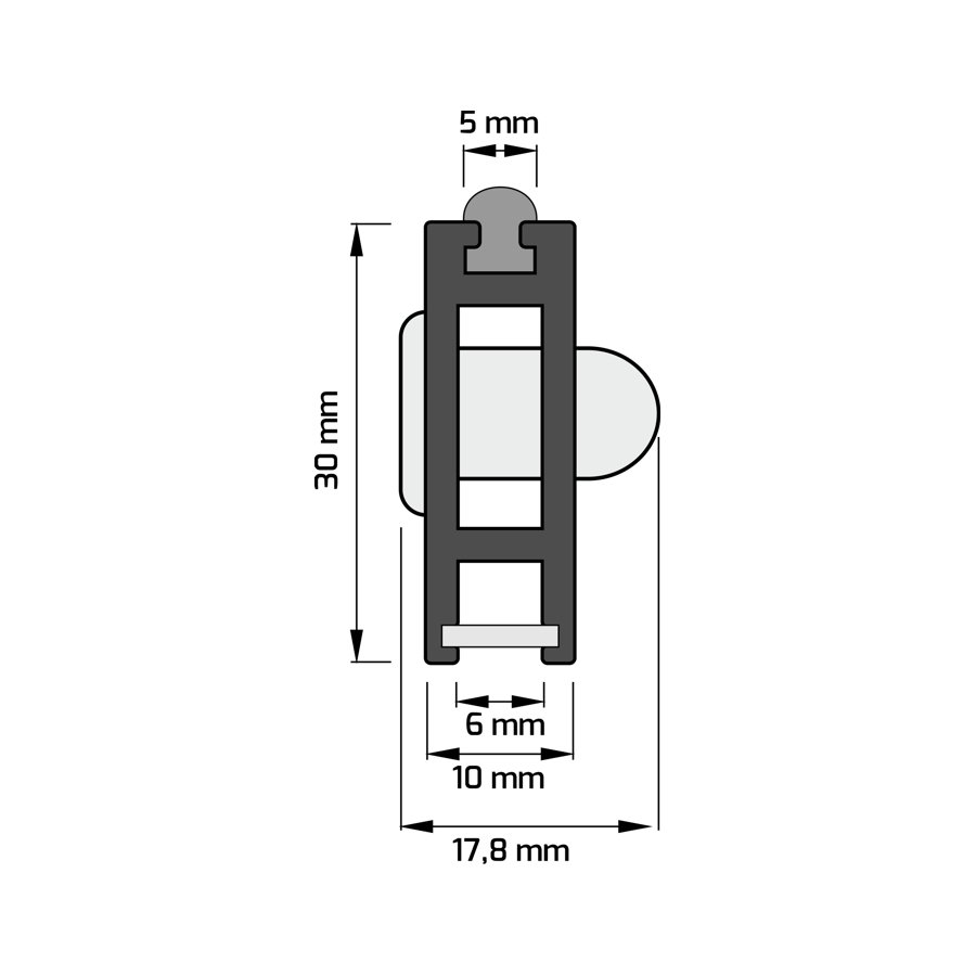 - obsahuje ochranný PVC profil na horní hraně jako ochranu proti poškrábání při posunu ramínka s oblečením a krycí mléčnou krytku