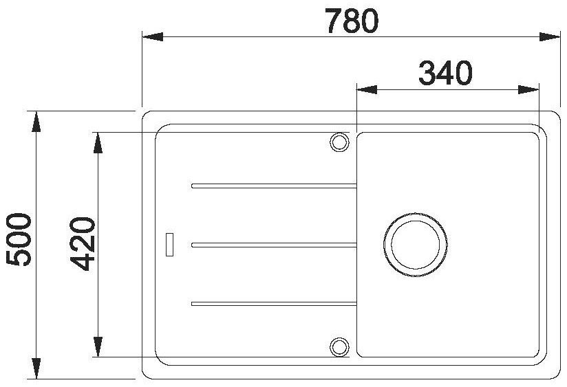 Dřez: 340 x 420 mm