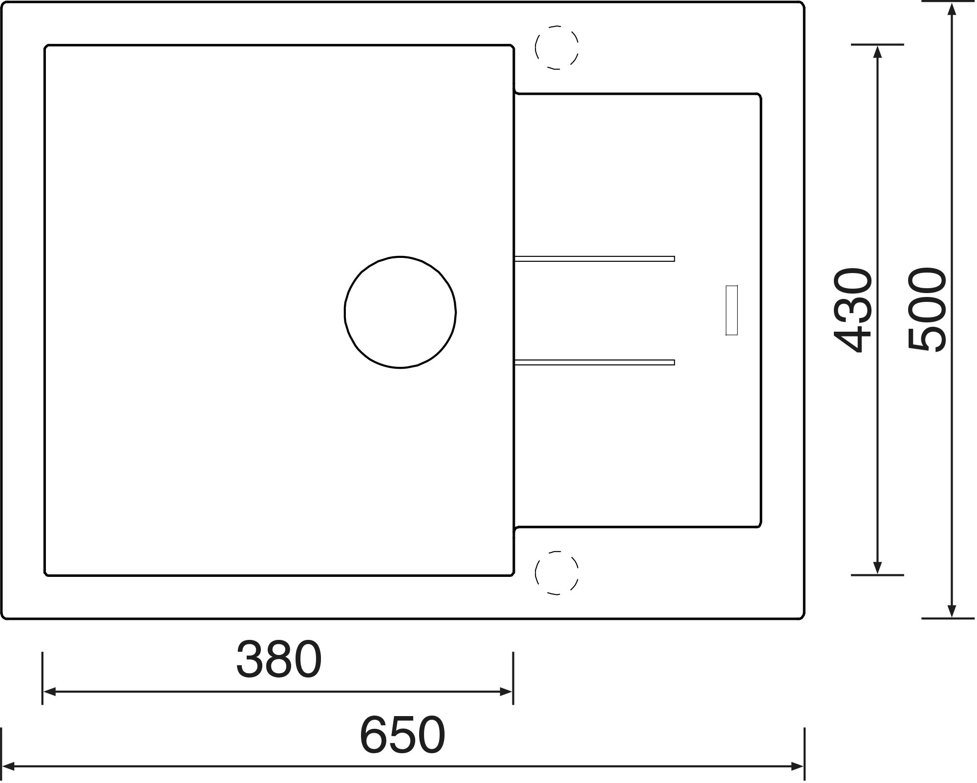 - vnější rozměr dřezu: 650 x 500 mm