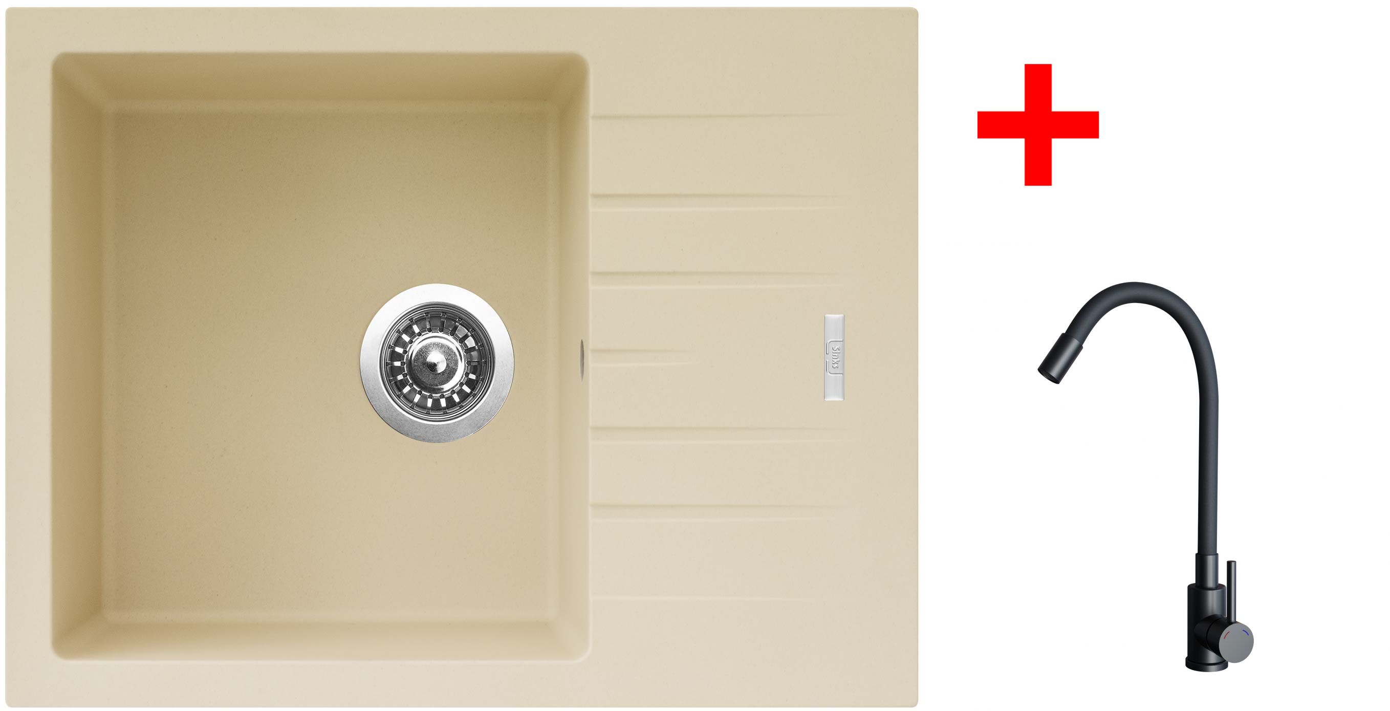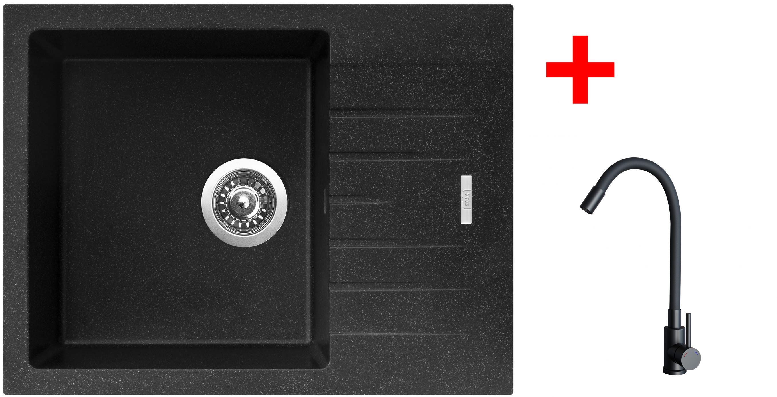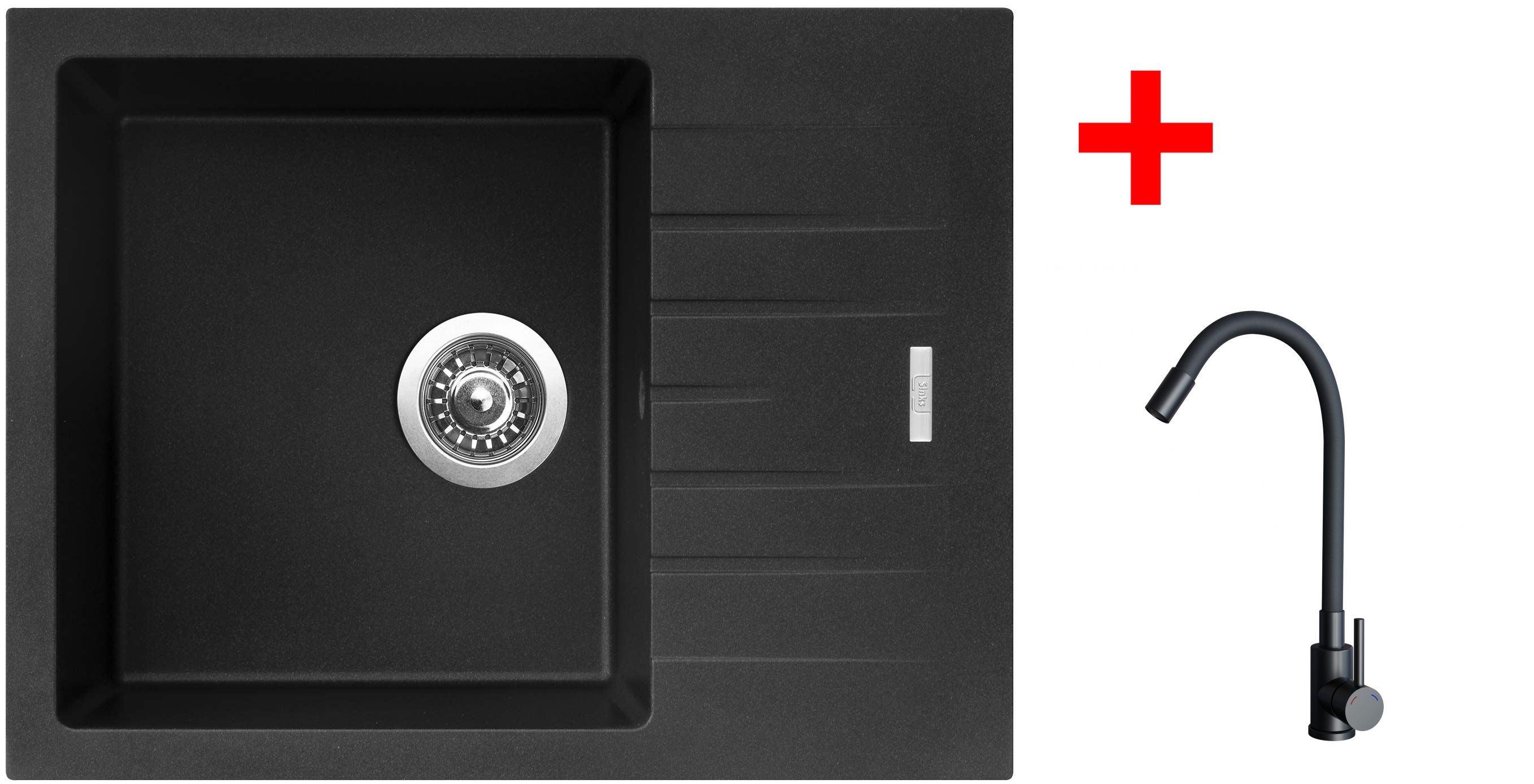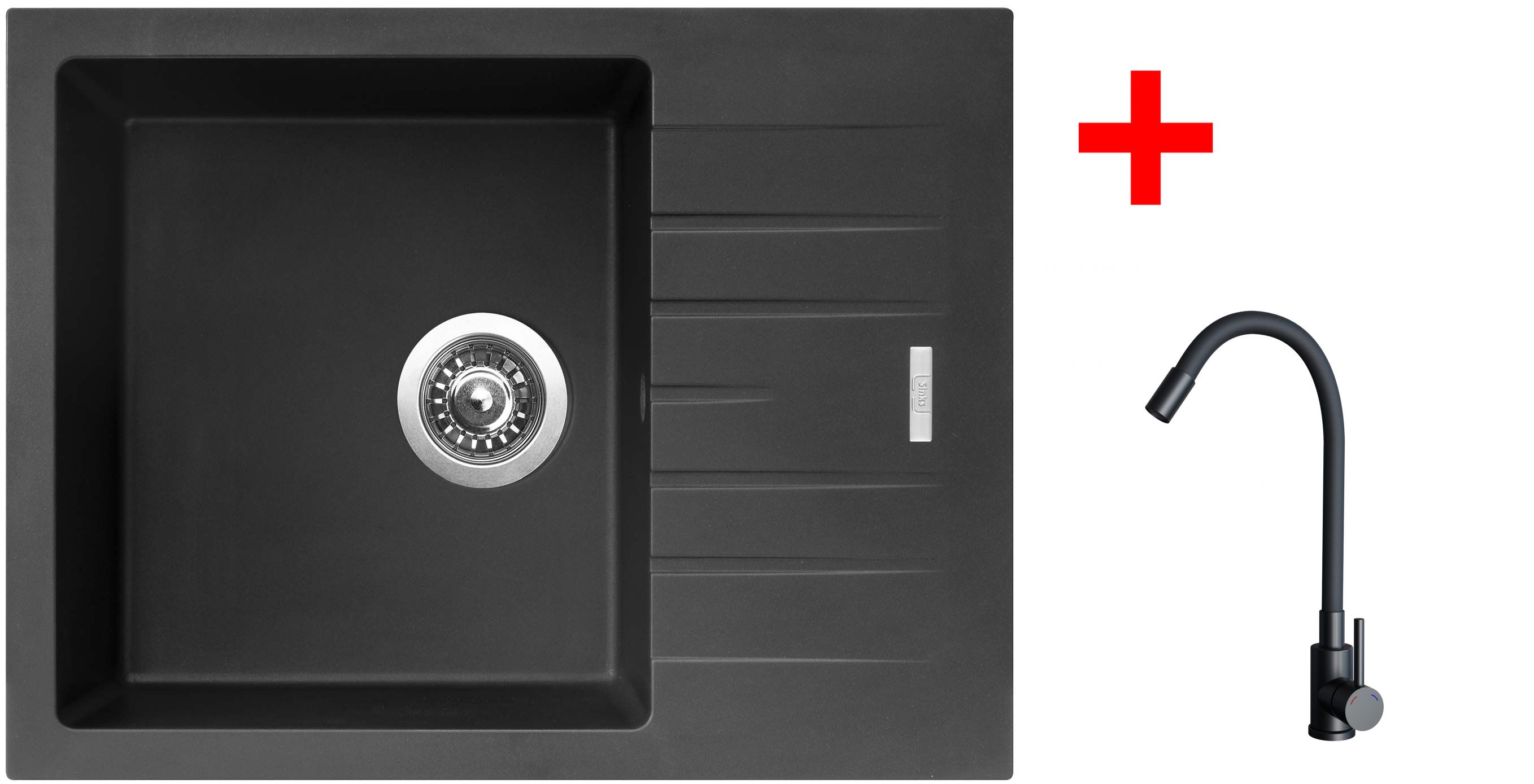 Set obsahuje dřez PERFECTO 650 s odkapem + baterii ELASTA černá matná