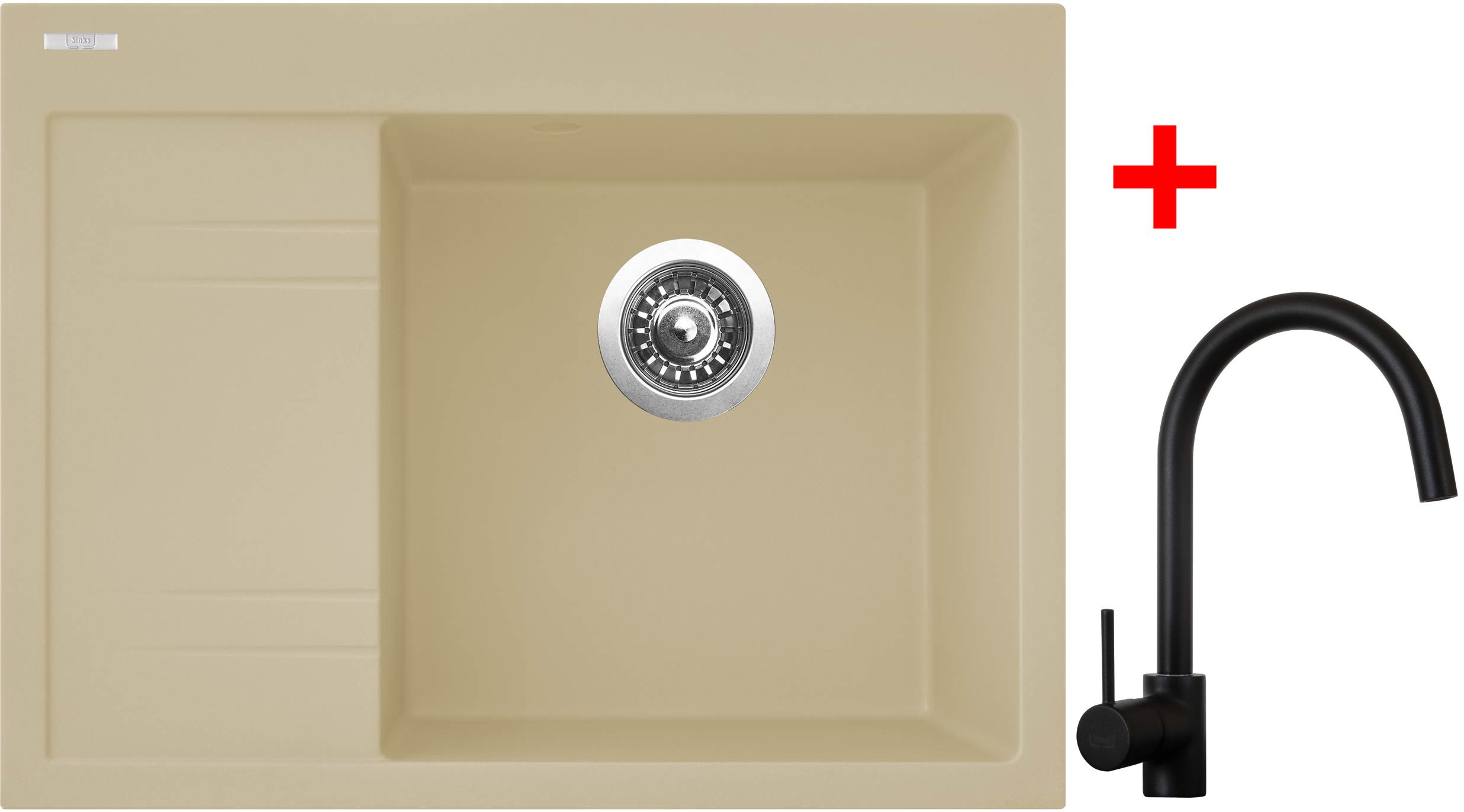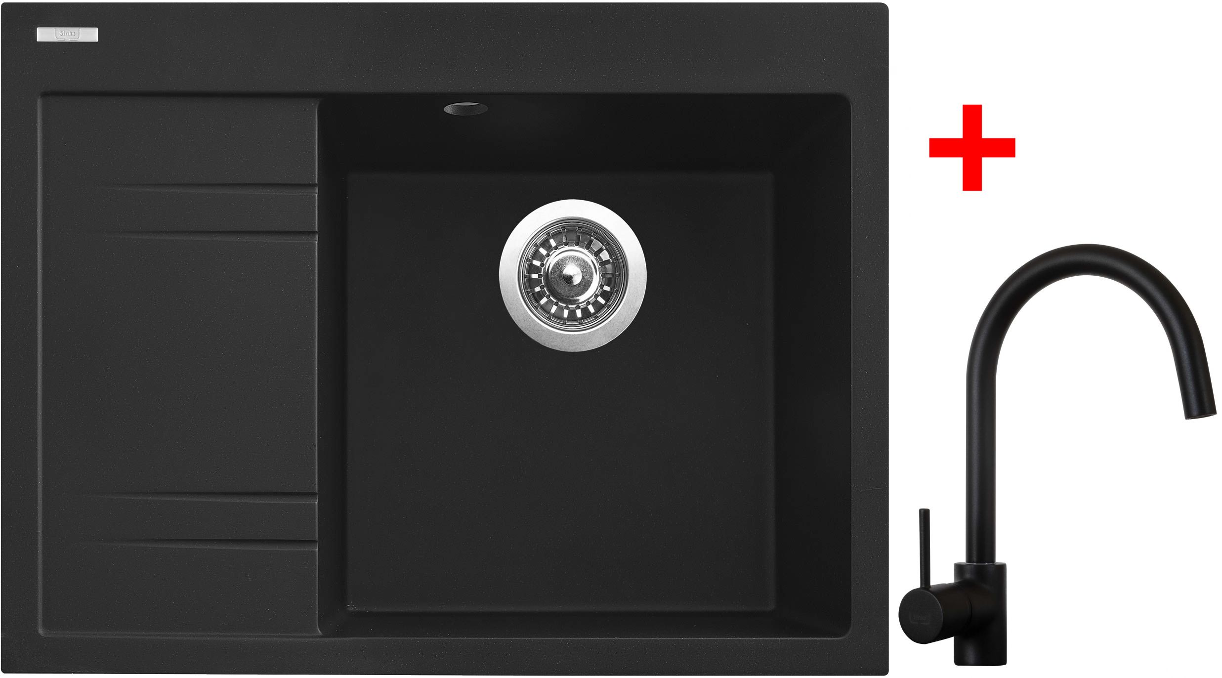 Set obsahuje dřez RIM 650 P pravý s odkapem + baterii VITALIA černá matná