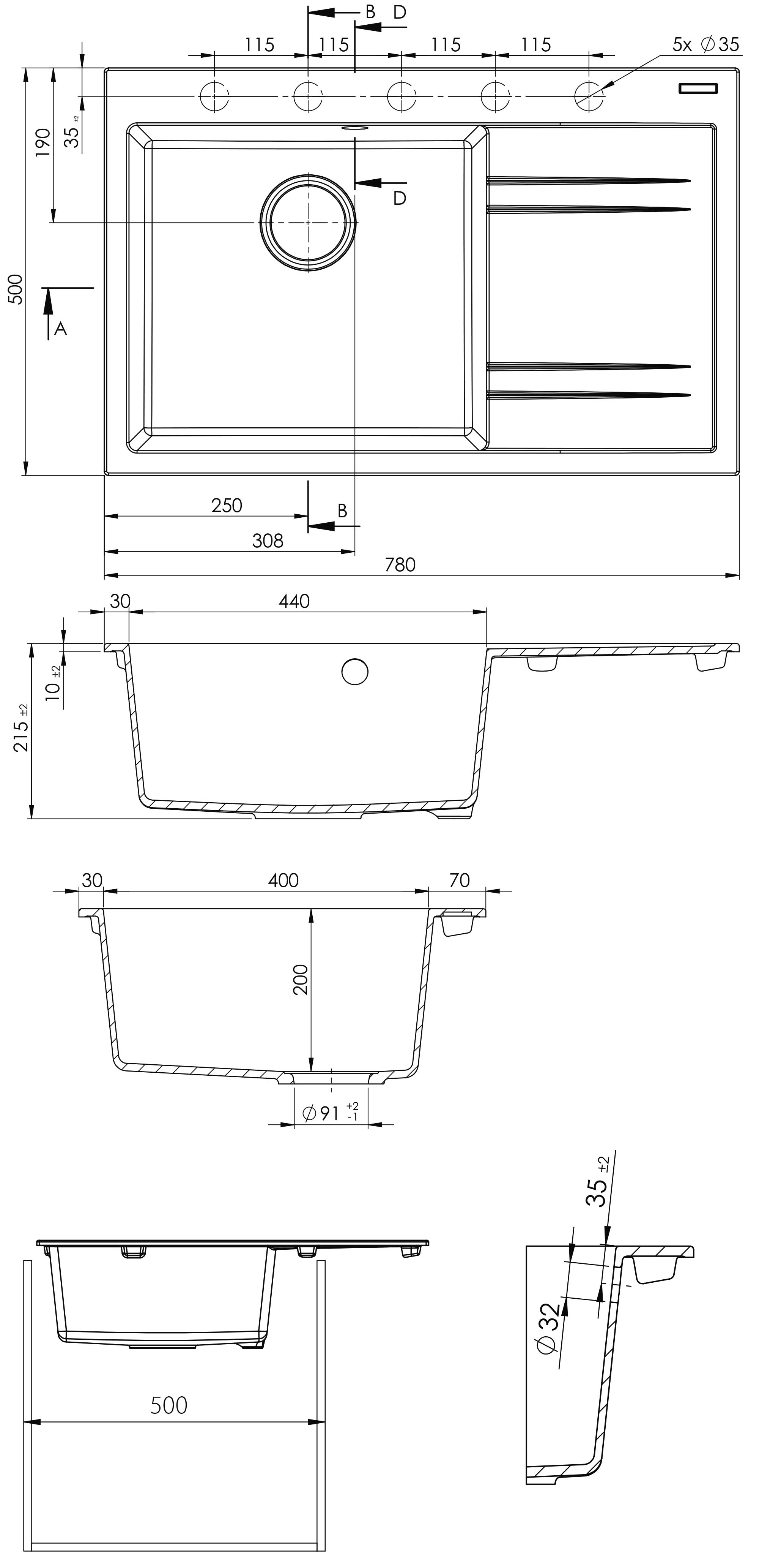 Orientace dřezu: Levý (vana dřezu vlevo)