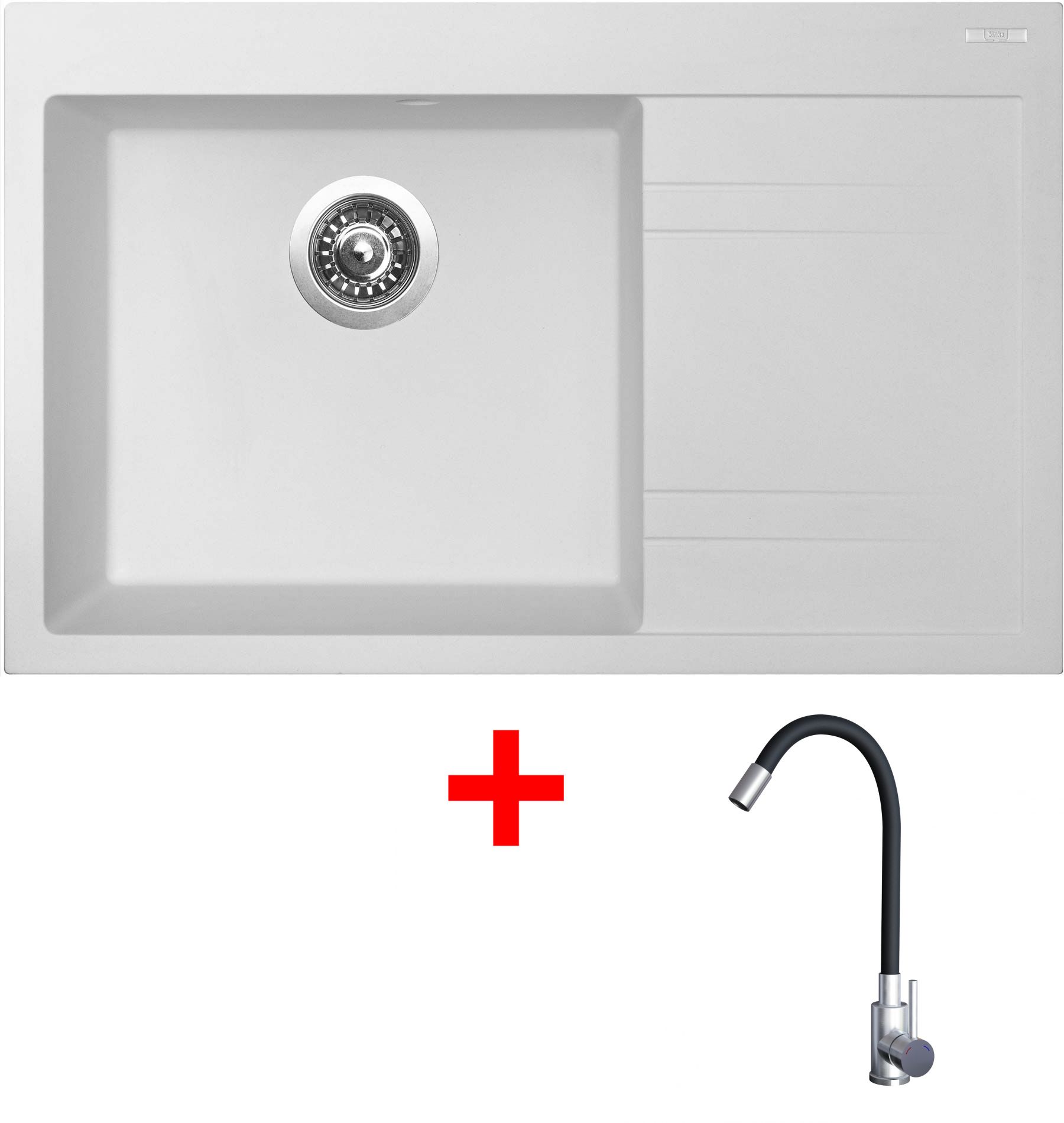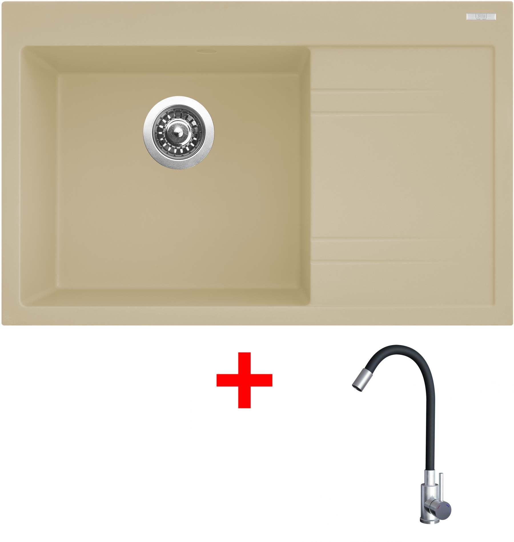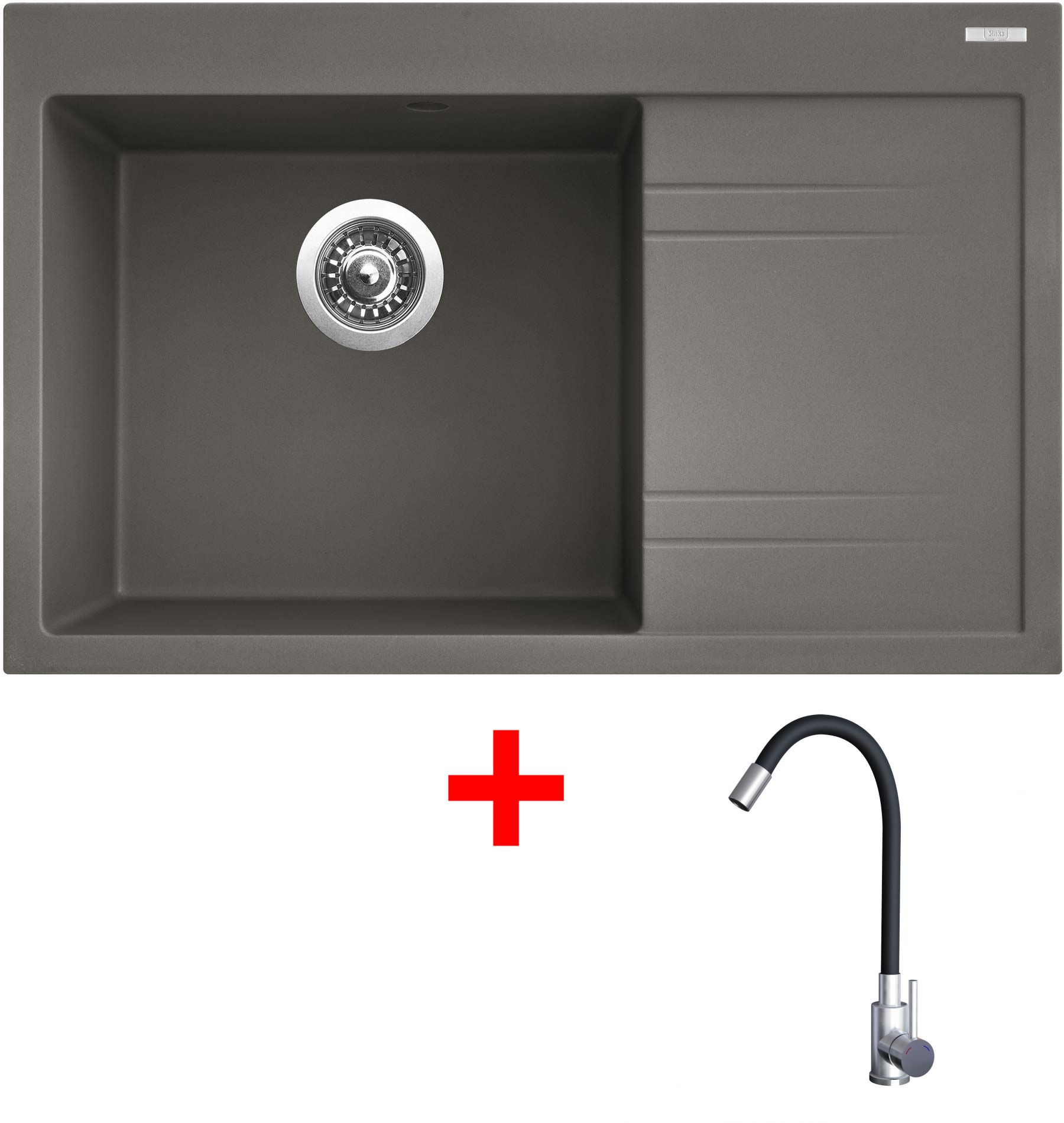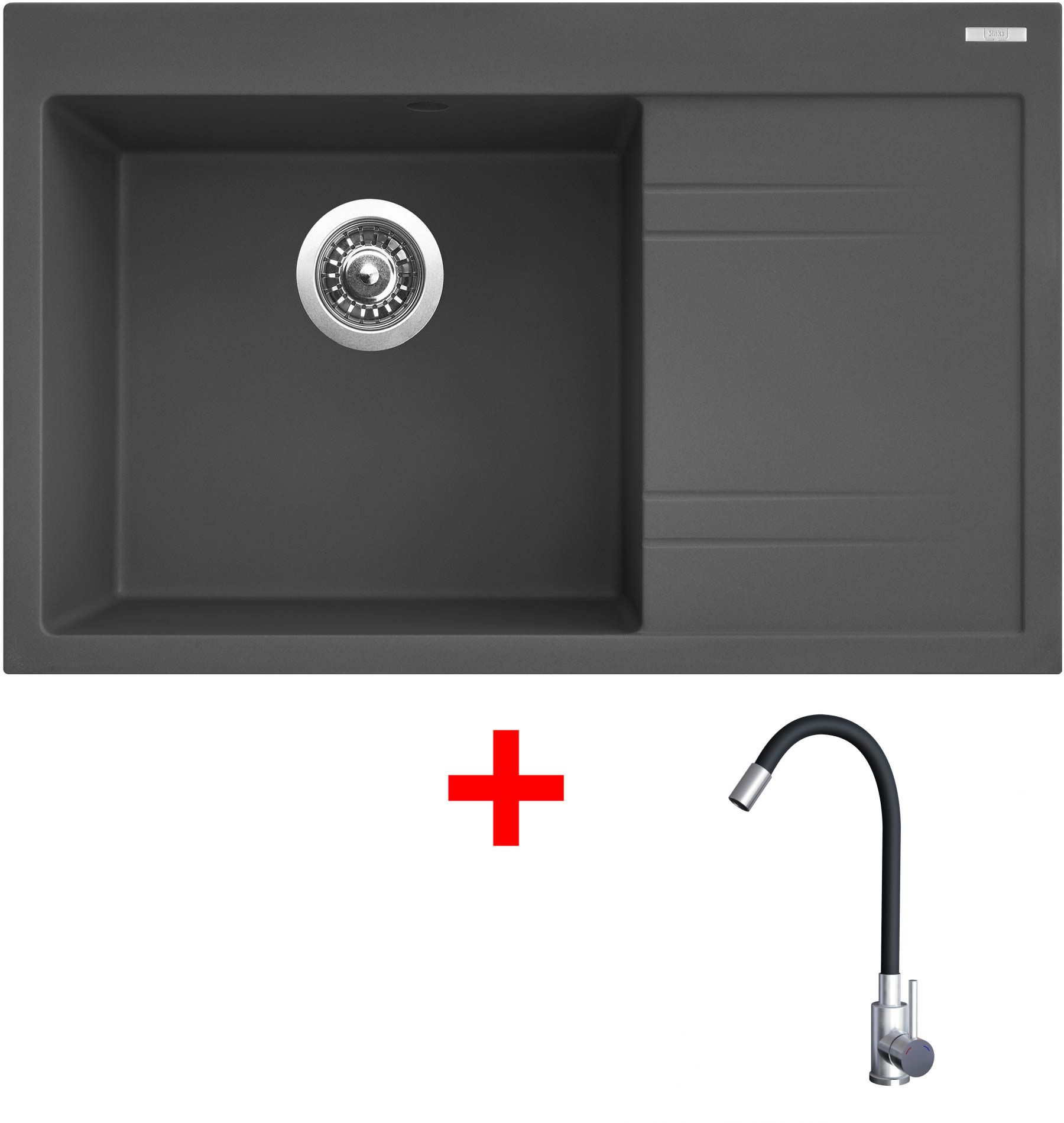 Set obsahuje dřez RIM 780 L levý s odkapem + baterii ELASTA nerez/ černá
