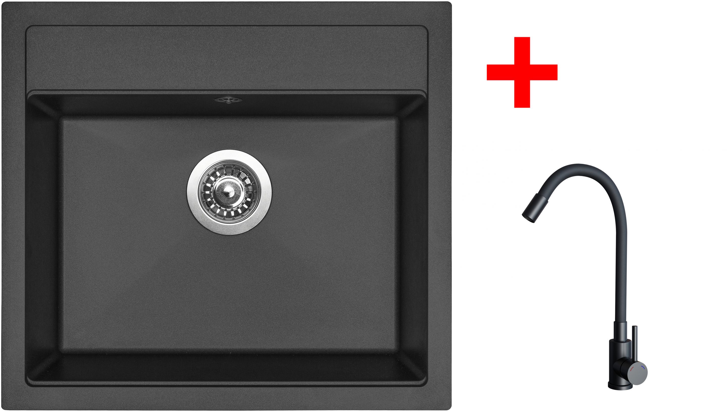 Set obsahuje dřez SOLO 560 + baterii ELASTA černá matná