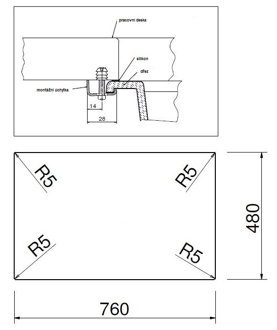 - vnější rozměr dřezu: 780 x 500 mm