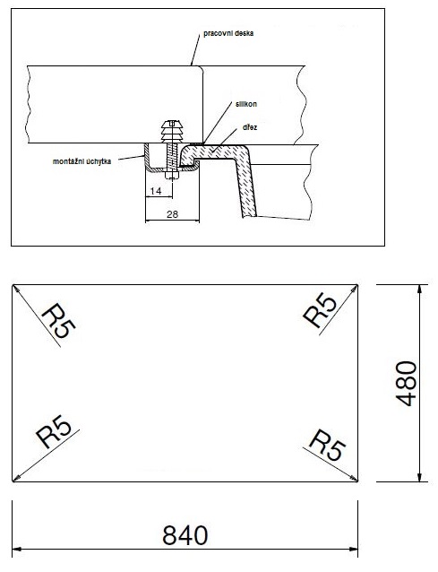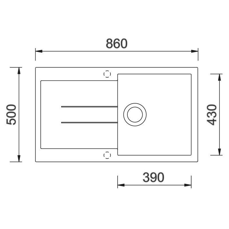 - vnější rozměr dřezu: 860 x 500 mm