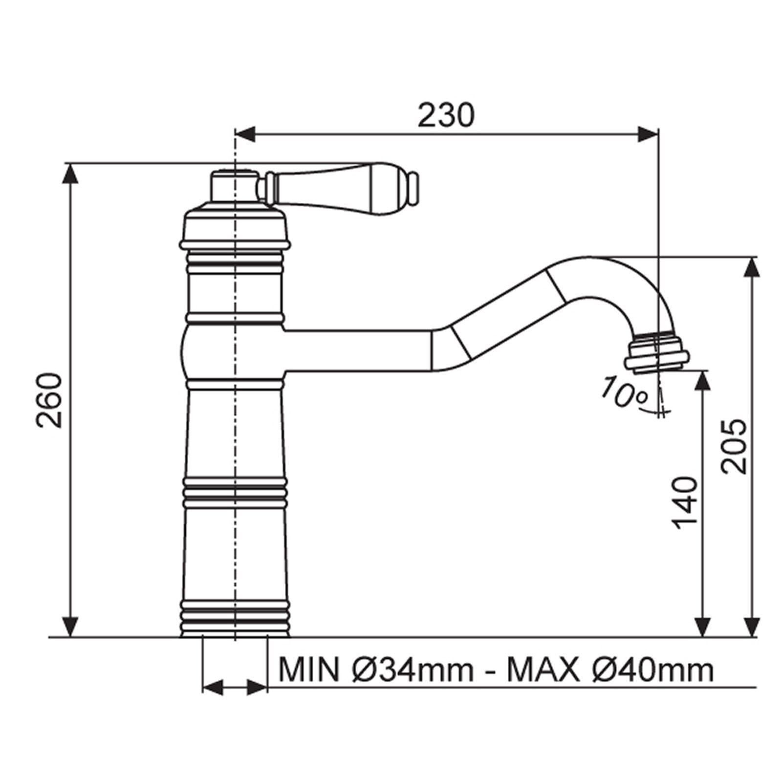 Montážní otvor: min. 34 mm - max. 40 mm
