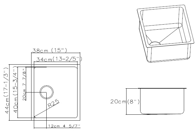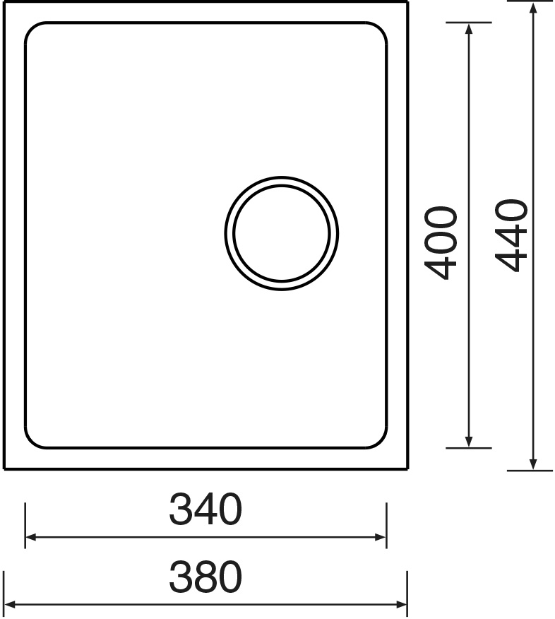 spodní skříňka: 450 mm (400 mm po úpravě skříňky)