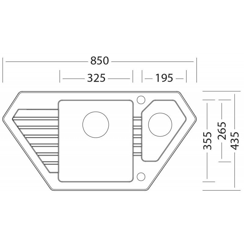 - vnější rozměr dřezu: 850 x 435 mm