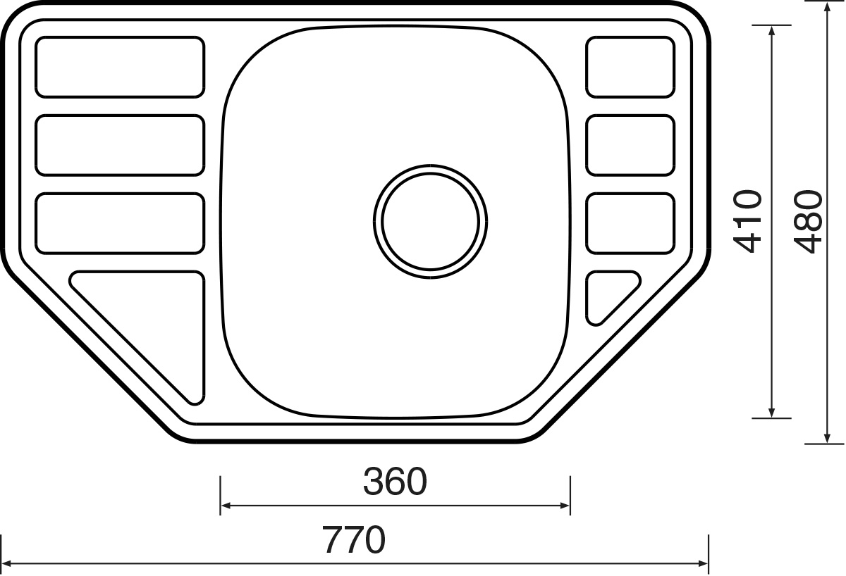 - vnější rozměr dřezu: 770 x 480 mm