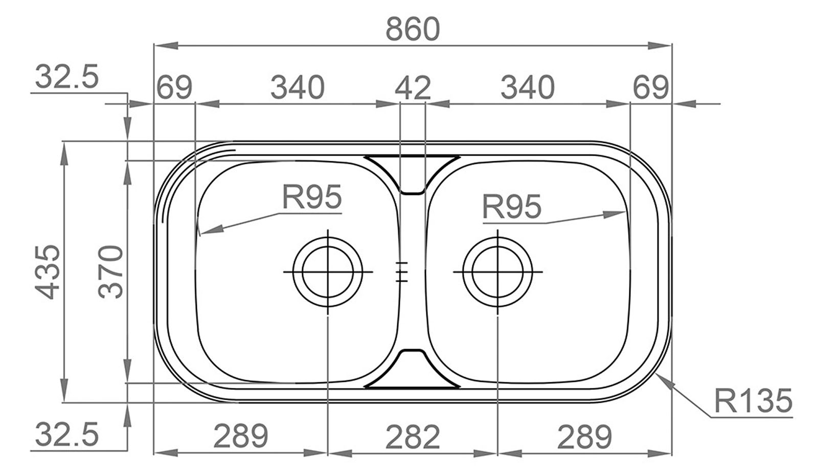 Rozměr van dřezu: 2 x 340 x 370 x 140 mm