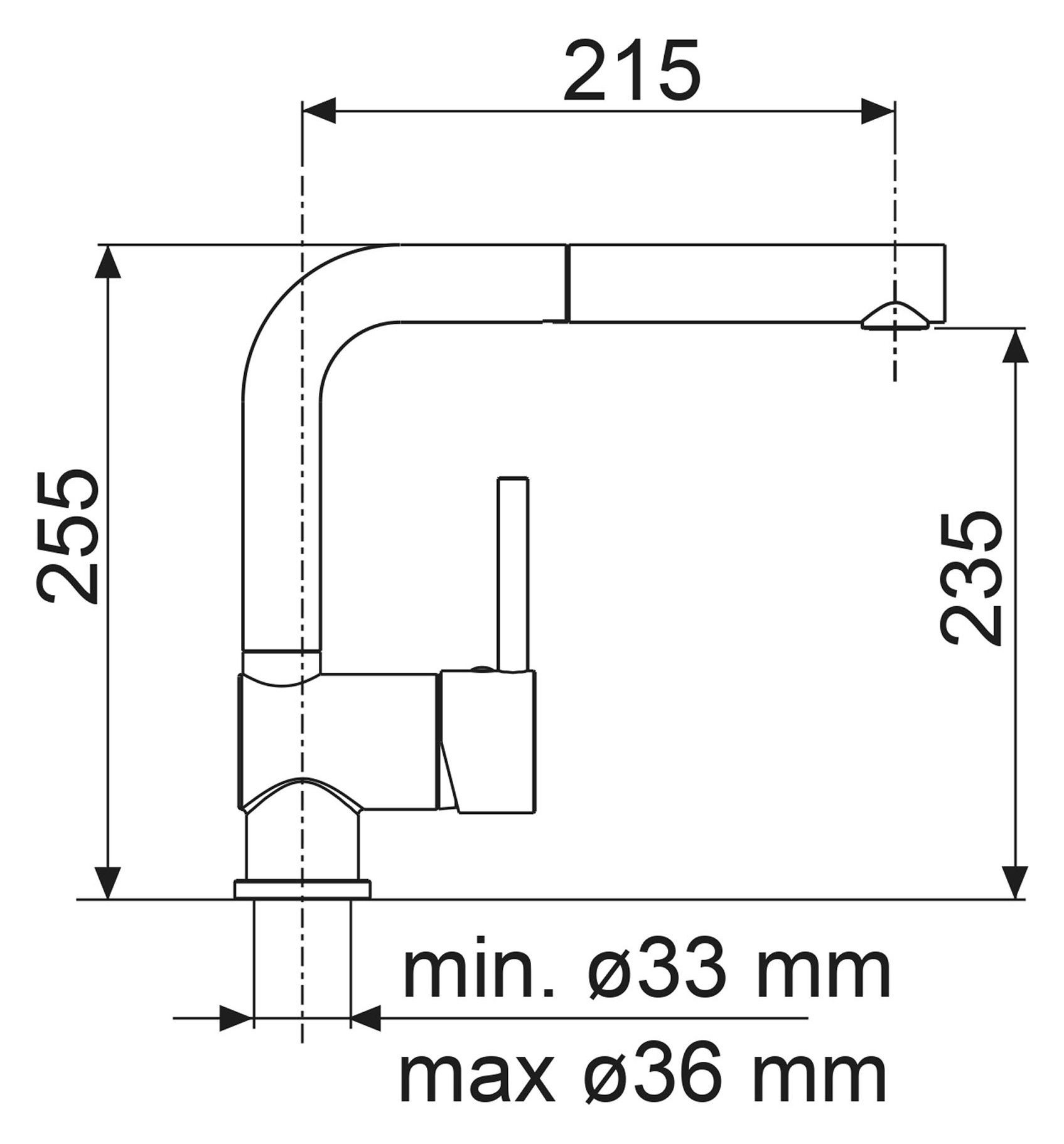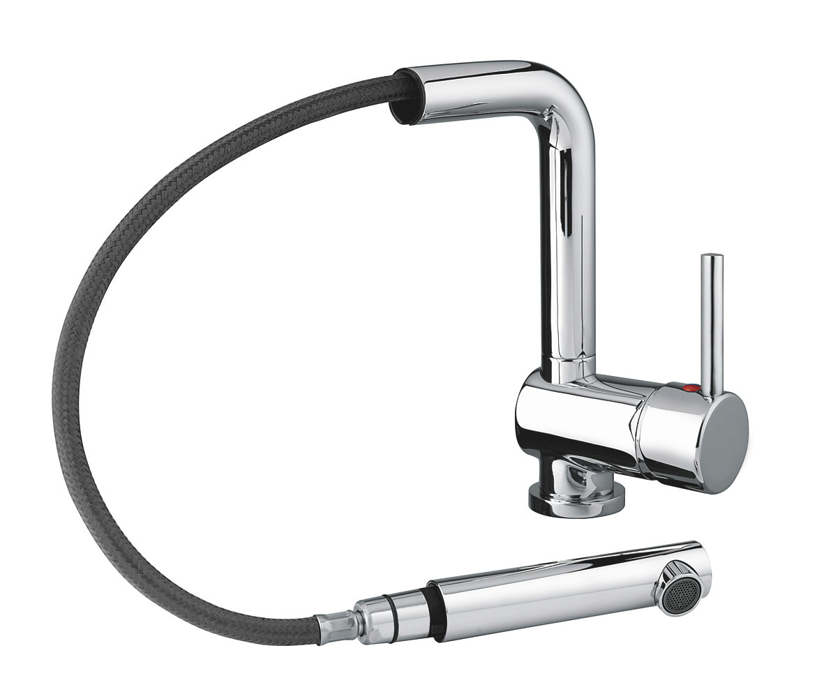 - dřezová stojánková baterie s vytahovací koncovkou s perlátorem, bez přepínače - pouze proud