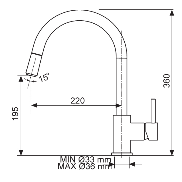 - dřezová stojánková baterie s vytahovací koncovkou s perlátorem, bez přepínače - pouze proud