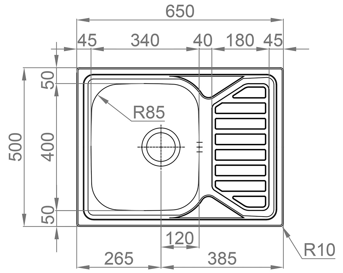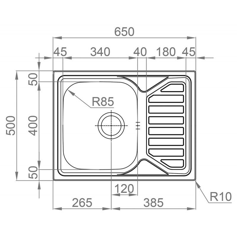 - vnější rozměr dřezu: 650 x 500 mm