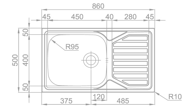- vnější rozměr dřezu: 800 x 500 mm